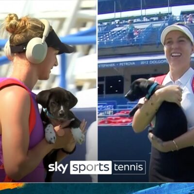 Watch Anastasia Pavlyuchenkova and Ashlyn Krueger carry two puppies onto court ahead of their face-off at the Citi Open. Source
