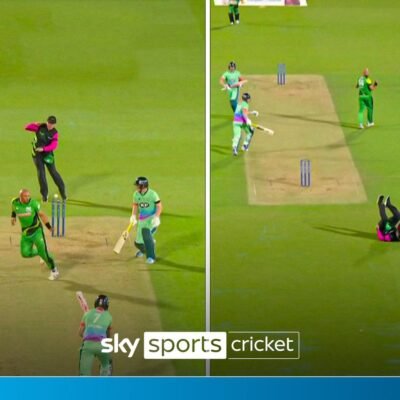 During The Hundred match between Southern Brave and Oval Invincibles, umpire Ben Debenham was hit by Sam Billings’ low effort,
