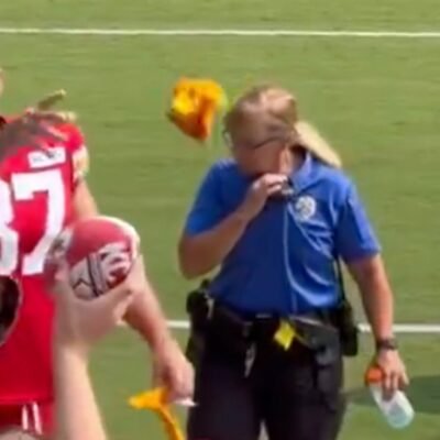 Travis Kelce Tosses Gloves To Taylor Swift Fan At Chiefs’ Training Camp