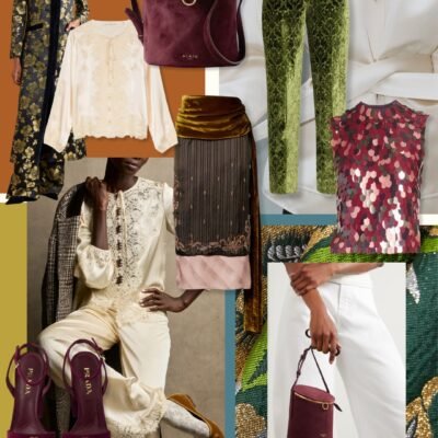 This season’s moodboard brims with energy: silks and satins that flow with movement, sequins that catch the light, and velvets