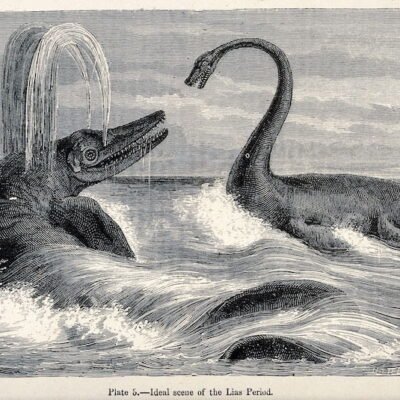 Four feet long and made of plaster, a lifelike model of Diplodocus carnegii lurks atop one of the cabinets in