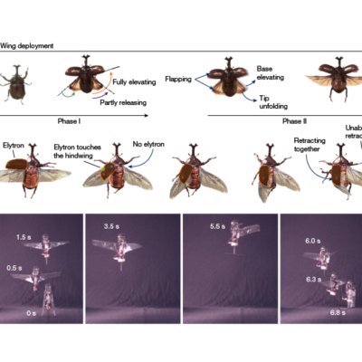 Beetle-inspired flapping robots effortlessly deploy and retract their wings