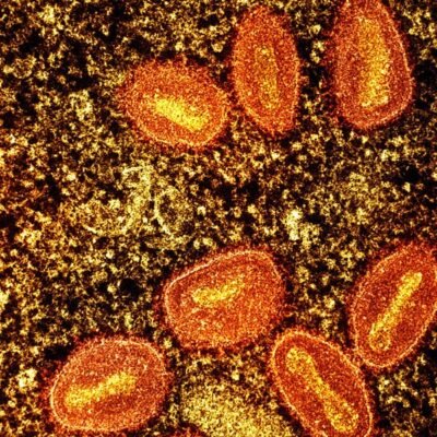 Monkeypox virus particles (shown in this coloured electron micrograph) can spread through close contact with people and animals.Credit: NIAID/Science Photo