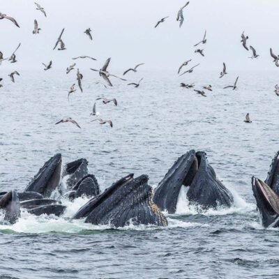 Humpback whales work together to trap fish by surrounding them with bubbles Jenn Dickie/North Coast Cetatean society An innovative feeding